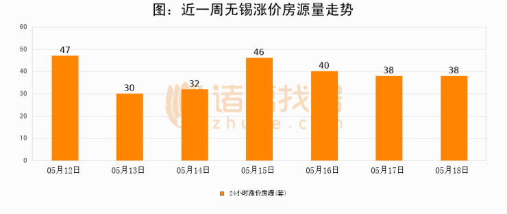 根据诸葛找房数据显示,无锡24小时涨价房源量为38套,较05月17日持平。