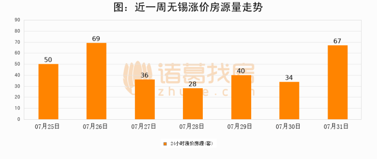 根据诸葛找房数据显示,无锡24小时涨价房源量为67套,较07月30日增加33套,环比上涨97.1%。与此同时,涨价房源占比小幅扩大,业主信心有所提升。