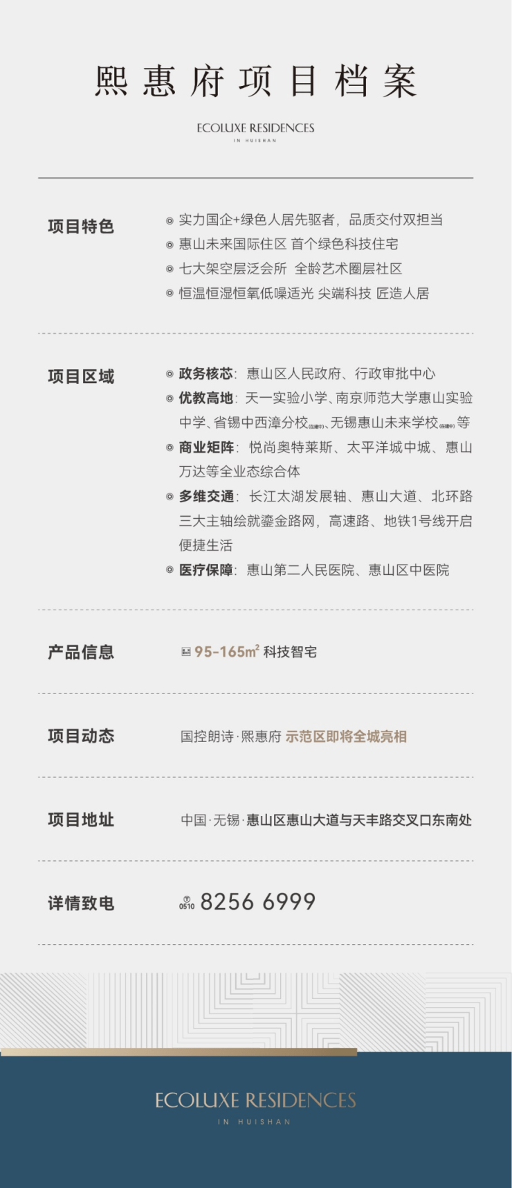 “熙”,兴盛光明之意,是惠山国控&朗诗地产,在向上的惠山,远见将来,打造未来国际住区的巨匠雄心;“惠”,从天惠热土、惠泽万物之中衍生而来,是绿色科技理念下,滋养万物的和谐共生;“府”,则代表着人居的高度,筑就惠山城市封面。