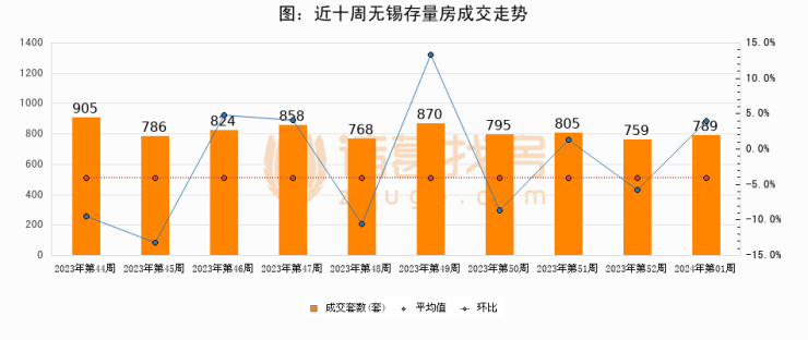 存量房方面,第52周无锡存量房成交789套,较上周增加30套,环比上涨4%。从近十周成交走势来看,周均成交套数为815套,本周低于平均水平3.2%。