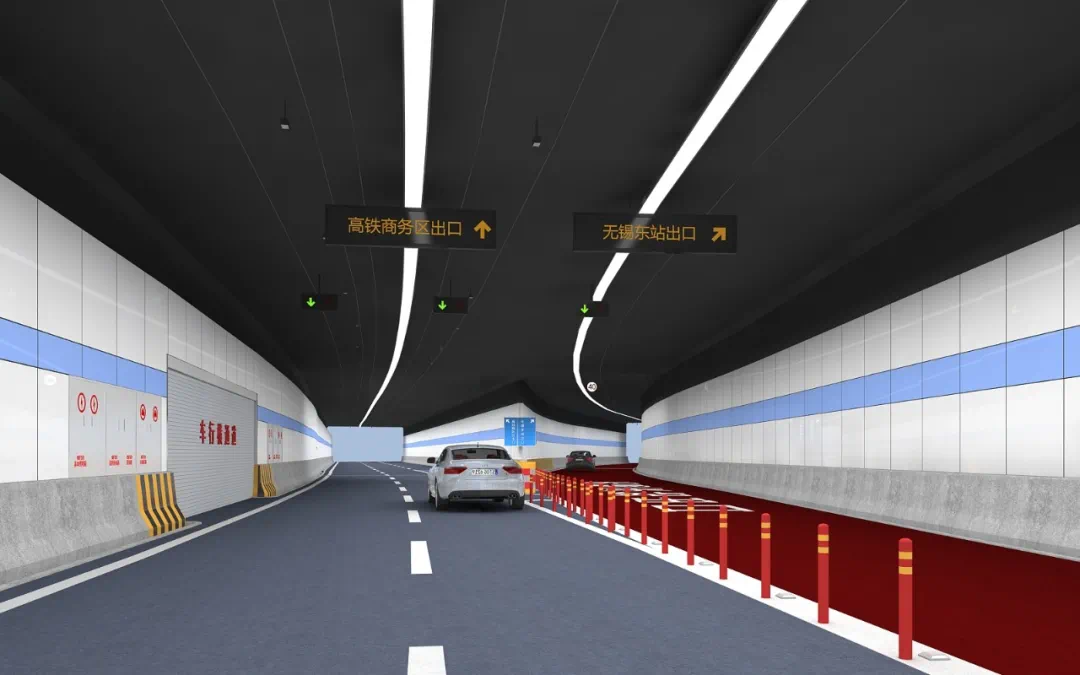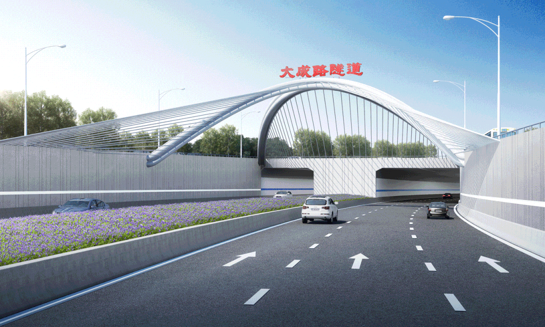 大成路快速化工程路线全长约5.4km,新华路起点为文瑞路,兴越路起点为迎安路,终点为大成桥,主线为隧道主路,全长约5.1km,设计速度60km/h,锡东大道以西采用双向6车道规模,以东采用双向4车道规模。地面道路全长约5.4km,设计速度50km/h,为双向6车道规模,沿线设置平行式匝道4对,定向匝道1对。