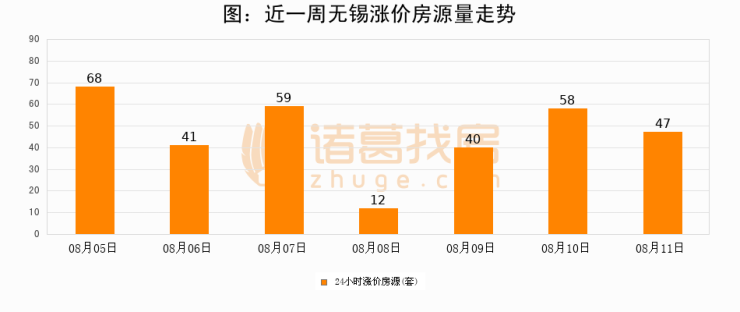 根据诸葛找房数据显示,无锡24小时涨价房源量为47套,较08月10日减少11套,环比下降19%。与此同时,涨价房源占比小幅回落,对于购房者来说是一个入市窗口期,购房者可抓住时机入市。