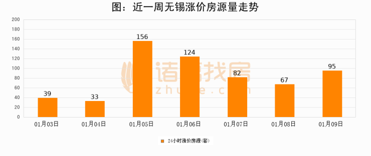 根据诸葛找房数据显示,无锡24小时涨价房源量为95套,较01月08日增加28套,环比上涨41.8%。与此同时,涨价房源占比小幅扩大,业主信心有所提升。