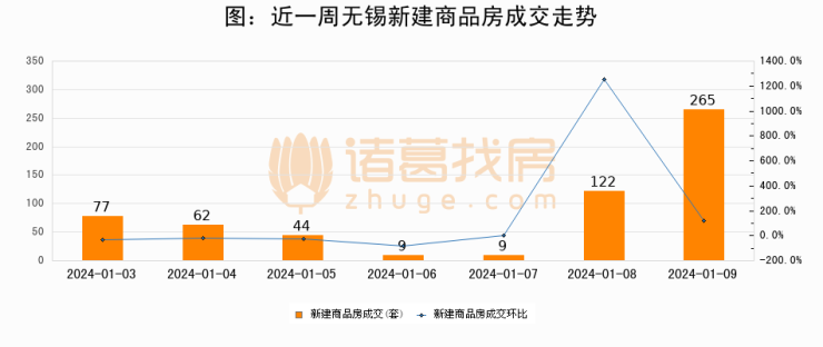 【无锡成交日报】01月09日新房成交265套、二手房162套;涨价房源95套