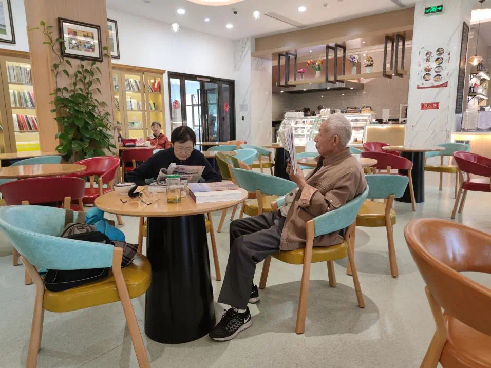 比起传统的养老院,养老公寓为住户提供的更多是家的感觉,而承担起家的感觉的便是这个由原先的售楼中心改造而成的面积足有2000㎡的共享中心,它不仅是小区用户的餐饮中心,同时也是小区的社交中心、文化中心、娱乐中心。