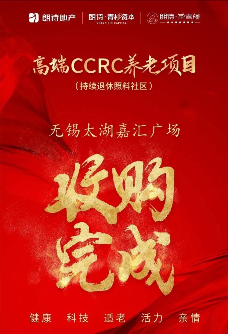 无锡太湖嘉汇广场完成收购,并将打造为高端CCRC养老项目(持续退休照料社区),集健康、科技、适老、活力、亲情于一体。