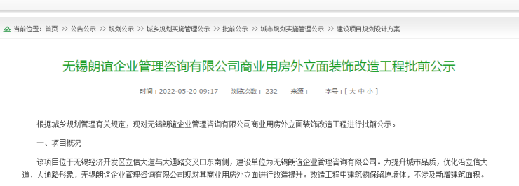 此前,无锡自然资源与规划局公布了项目商业用房外立面装饰改造工程方案。