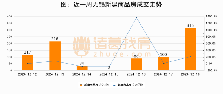 【无锡成交日报】12月18日新房成交315套、二手房200套;涨价房源128套