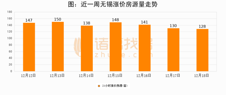 根据诸葛找房数据显示,无锡24小时涨价房源量为128套,较12月17日减少2套,环比下降1.5%。与此同时,涨价房源占比小幅回落,对于购房者来说是一个入市窗口期,购房者可抓住时机入市。