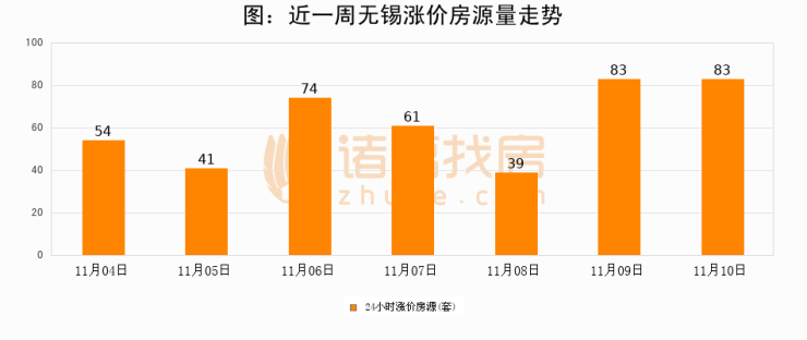 根据诸葛找房数据显示,无锡24小时涨价房源量为83套,较11月09日持平。
