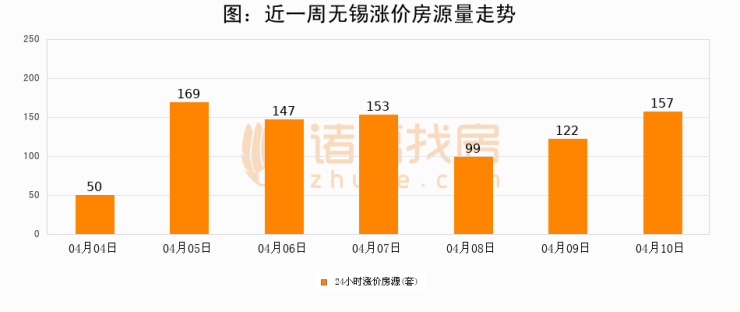 根据诸葛找房数据显示,无锡24小时涨价房源量为157套,较04月09日增加35套,环比上涨28.7%。与此同时,涨价房源占比小幅扩大,业主信心有所提升。