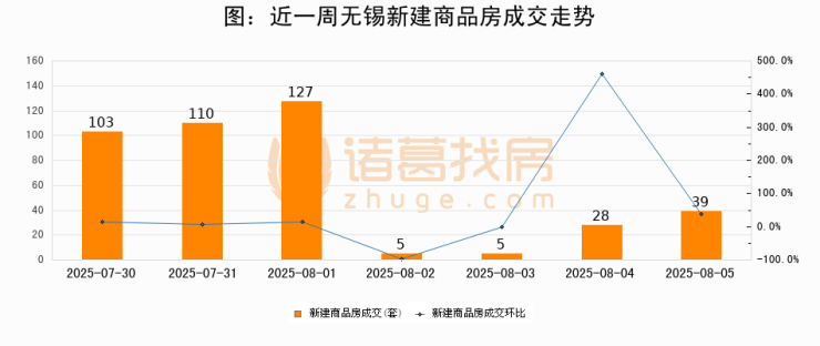 【无锡成交日报】08月05日新房成交39套、二手房110套;涨价房源1套
