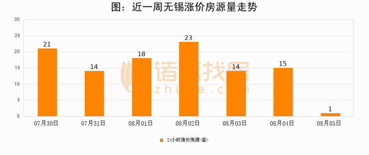 根据诸葛找房数据显示,无锡24小时涨价房源量为1套,较08月04日减少14套,环比下降93.3%。与此同时,涨价房源占比小幅回落,对于购房者来说是一个入市窗口期,购房者可抓住时机入市。