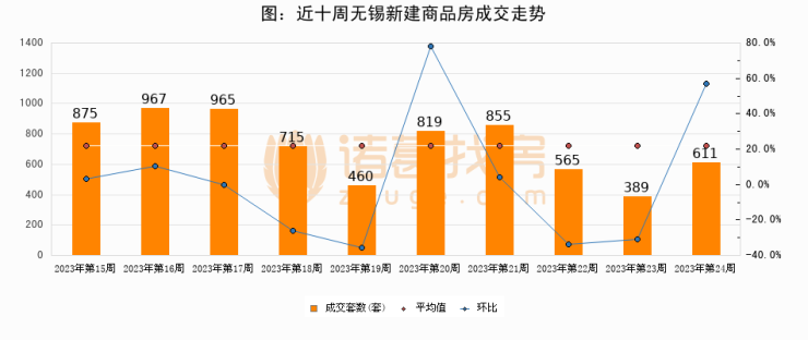【无锡成交周报】第24周新房成交611套,二手房812套,涨价房源607套