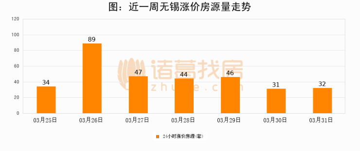 根据诸葛找房数据显示,无锡24小时涨价房源量为32套,较03月30日增加1套,环比上涨3.2%。与此同时,涨价房源占比小幅扩大,业主信心有所提升。