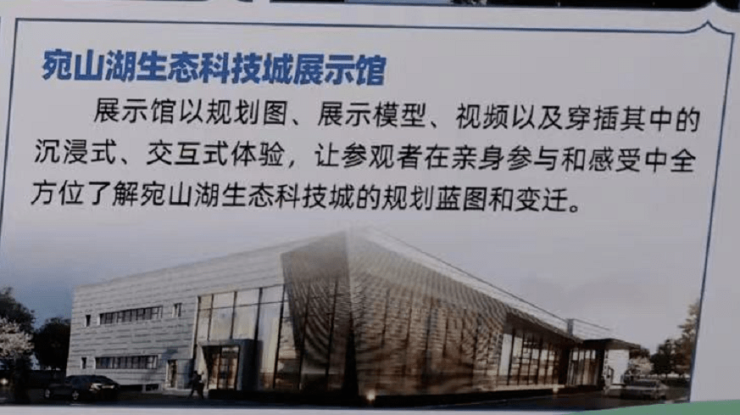 宛山湖生态科技城展示馆以规划图、展示模型、视频以及穿插其中的沉浸式、交互式体验,让参观者在亲身参与和感受中全方位了解宛山湖生态科技城的规划蓝图和变迁。
