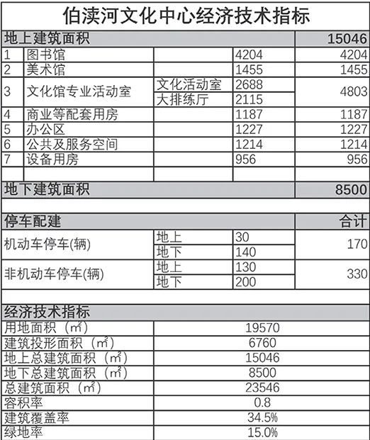 项目建设内容包括文化馆、图书馆、美术馆、文化活动室、排练厅、配套商业、办公区及设备用房等,建筑面积约2.4万平方米,项目容积率、建筑密度等相关指标符合规划要求。