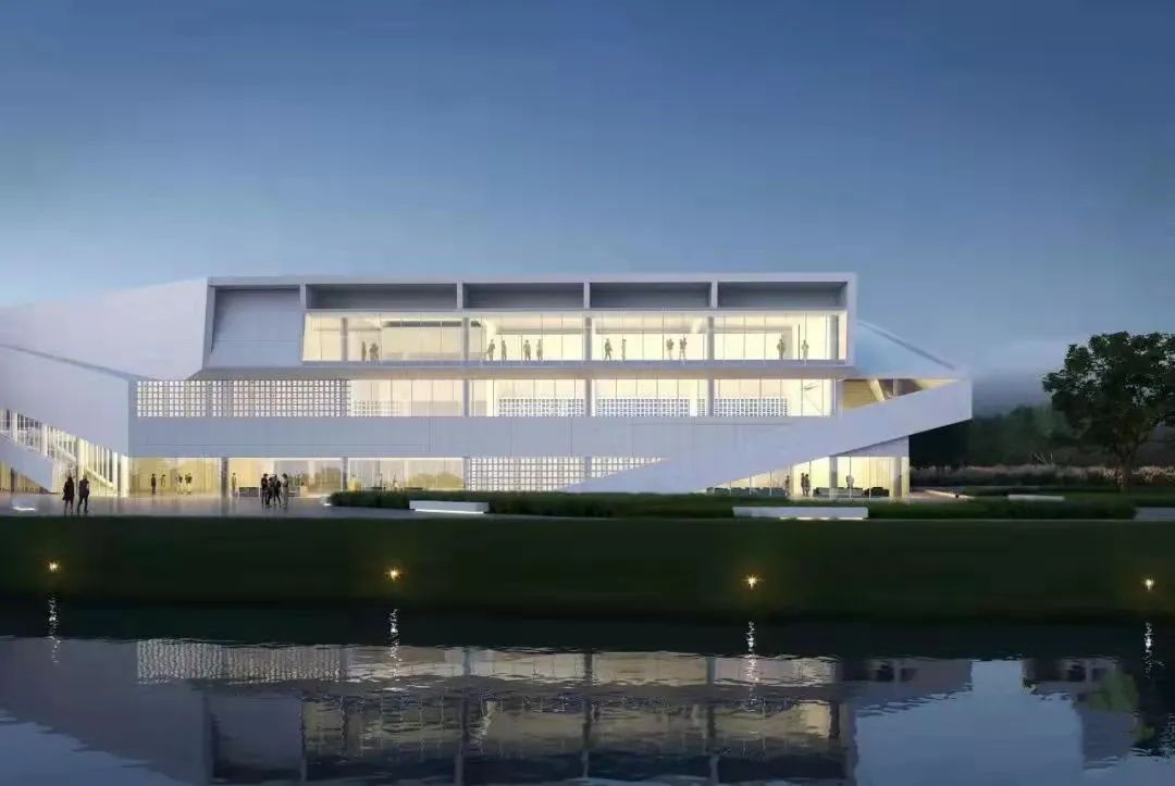 伯渎河文化中心主体建筑设计很有特色,将文化艺术融于建筑,打造集城市、建筑、景观、室内四维一体的当代全景式、园林化文化中心。