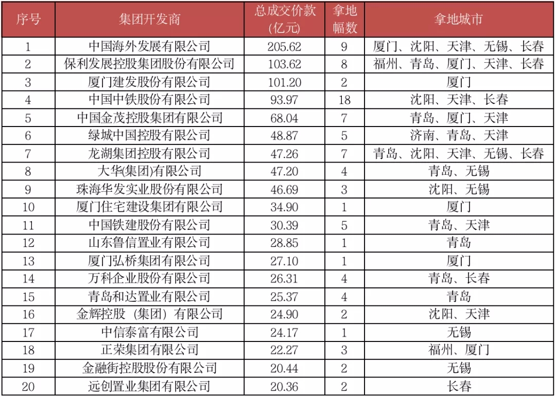 第二轮集中供地中拿地成交价款前20企业