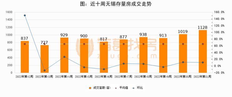 存量房方面,第51周无锡存量房成交1128套,较上周增加109套,环比上涨10.7%。从近十周成交走势来看,周均成交套数为908套,本周高于平均水平24.2%。