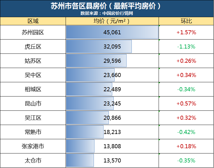 作为苏南老大哥苏州经济实力长期占据江苏排名前列城市居住环境也驰名中外素有上有天堂,下有苏杭之称目前苏州全市二手房均价是22729元/㎡较上月平均价格涨幅约2.26%