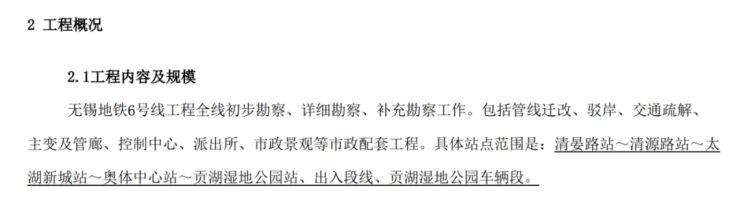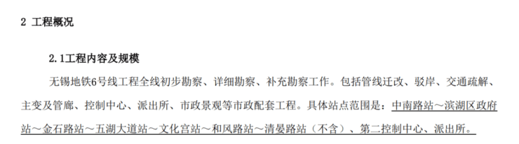 无锡地铁6号线工程勘察项目02标工程内容及规模
