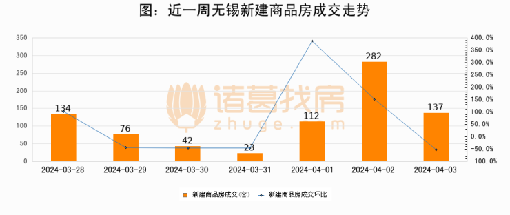 【无锡成交日报】04月03日新房成交137套、二手房220套;涨价房源105套