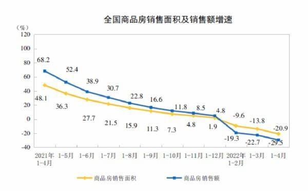 全国房地产开发投资增速同比由正转负 4月商品房销售额降超四成
