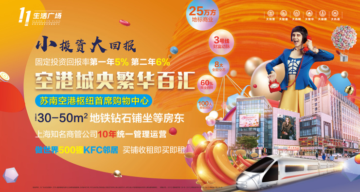 11生活广场作为苏南空港枢纽首席购物中心,目前已成功招商入驻星巴克、肯德基、上海国际影城、屈臣氏等众多品牌商家。预计年营业额将突破3000万元,