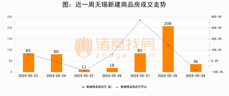 【无锡成交日报】05月29日新房成交36套、二手房145套;涨价房源128套