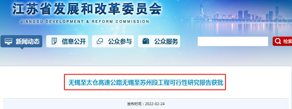 2月24日,省发展改革委批复无锡至太仓高速公路无锡至苏州段工程可行性研究报告。