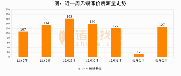 根据诸葛找房数据显示,无锡24小时涨价房源量为127套,较01月01日增加115套,环比上涨958.3%。与此同时,涨价房源占比小幅扩大,业主信心有所提升。