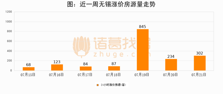 根据诸葛找房数据显示,无锡24小时涨价房源量为302套,较07月20日增加68套,环比上涨29.1%。与此同时,涨价房源占比小幅扩大,业主信心有所提升。