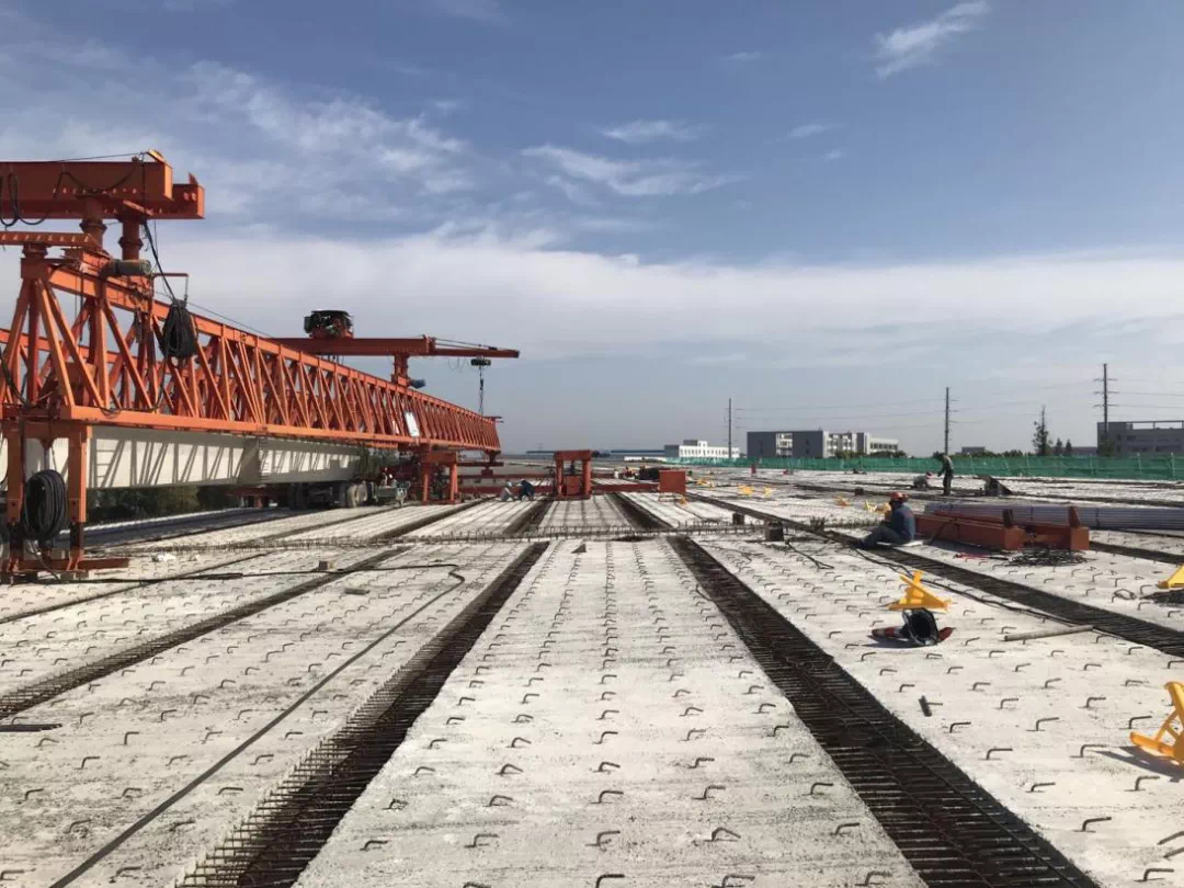 在高架段施工现场,记者注意到,工地预制厂外堆放着一排排工厂出炉的盖梁,无锡交建宜马项目负责人说,该标段配套有预制厂和钢筋加工厂,从材料加工到箱梁预制成型,全套工序均在工地内完成,工艺优化提升了施工效率。