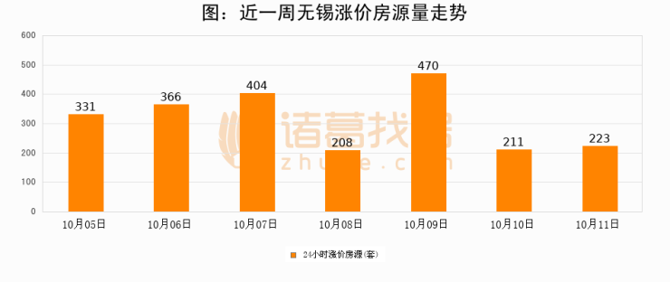 根据诸葛找房数据显示,无锡24小时涨价房源量为223套,较10月10日增加12套,环比上涨5.7%。与此同时,涨价房源占比小幅扩大,业主信心有所提升。