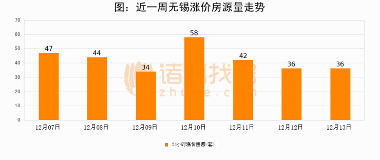 根据诸葛找房数据显示,无锡24小时涨价房源量为36套,较12月12日持平。