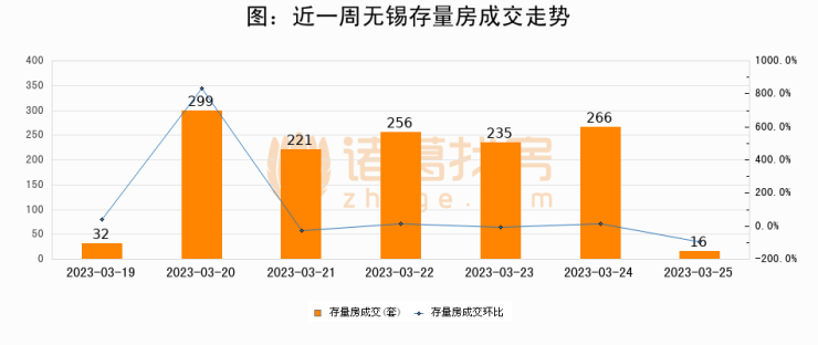 从存量房来看,2023年03月25日无锡存量房单日成交16套,比昨日减少250套,环比下降94%。从近一周存量房成交来看,无锡存量房日均成交套数为189套,03月25日单日成交16套,低于近一周平均水平91.5%。