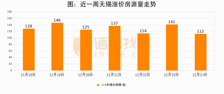 根据诸葛找房数据显示,无锡24小时涨价房源量为112套,较12月23日减少29套,环比下降20.6%。与此同时,涨价房源占比小幅回落,对于购房者来说是一个入市窗口期,购房者可抓住时机入市。