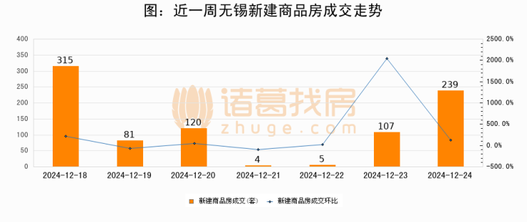 【无锡成交日报】12月24日新房成交239套、二手房174套;涨价房源112套