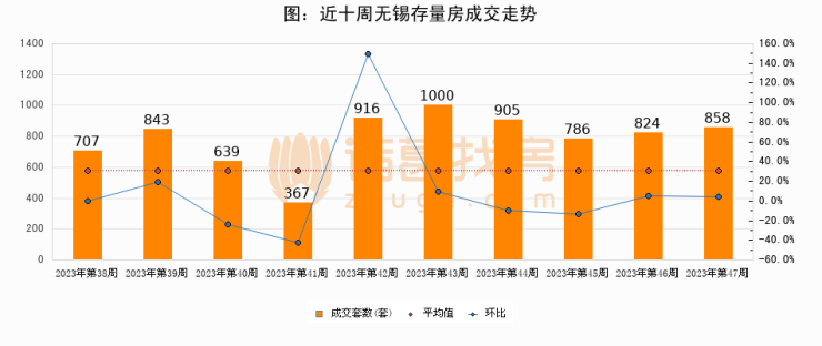 存量房方面,第47周无锡存量房成交858套,较上周增加34套,环比上涨4.1%。从近十周成交走势来看,周均成交套数为784套,本周高于平均水平9.4%。