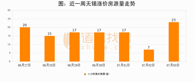 根据诸葛找房数据显示,无锡24小时涨价房源量为23套,较07月02日增加16套,环比上涨228.6%。与此同时,涨价房源占比小幅扩大,业主信心有所提升。