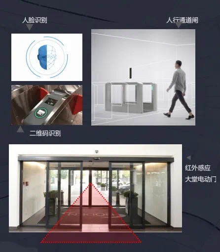 从红外感应大堂电动门,到实现人脸识别、二维码识别的人行通道闸,无感人行已成为生活必备;车牌自动识别与无纸化支付加快车辆出入的速度,同时社区出入口配置智慧停车系统加通道管理系统,高效解决人流和车流的进出管理,保证社区人车的便捷通行及安全性。