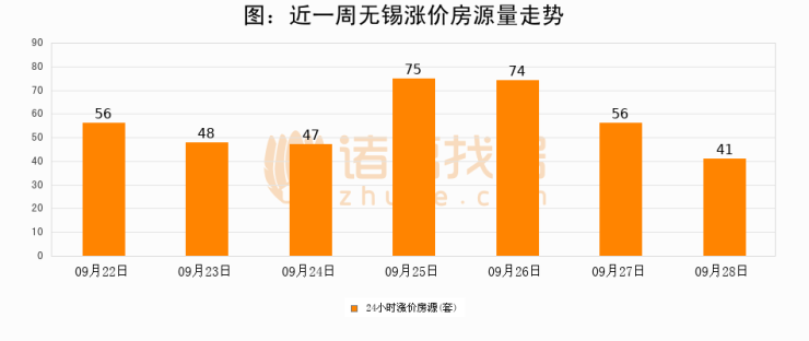 根据诸葛找房数据显示,无锡24小时涨价房源量为41套,较09月27日减少15套,环比下降26.8%。与此同时,涨价房源占比小幅回落,对于购房者来说是一个入市窗口期,购房者可抓住时机入市。