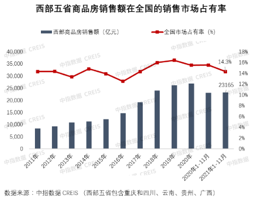 原标题:2021中国西部房地产行业发展报告:西部50强房企持续优化深耕 市场销售额占比升至35.7%