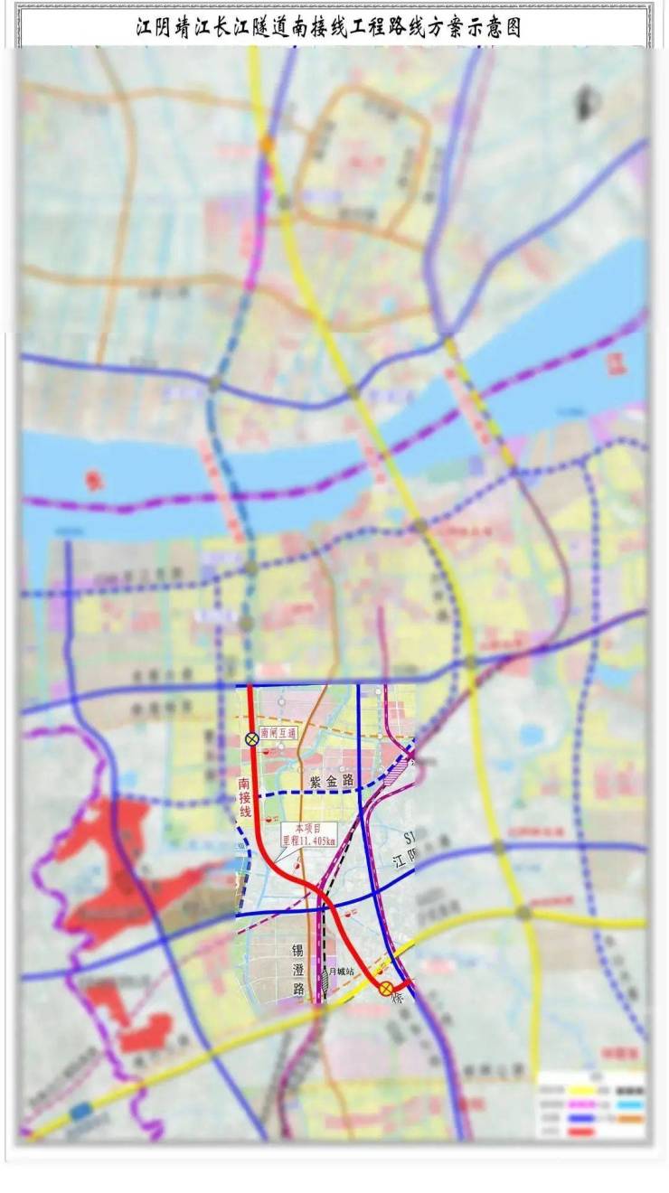 江阴靖江长江隧道南接线是目前在建的江阴靖江长江隧道的重要配套工程,起于江阴芙蓉大道,顺接江阴靖江长江隧道,起点至南云路段利用规划廊道(规划西外环路线位),止于与沪武高速交叉处,并衔接徐霞客大道,全长11.405公里。全线采用双向六车道高速公路建设标准,路基全宽33.5米,设计时速100公里/小时。