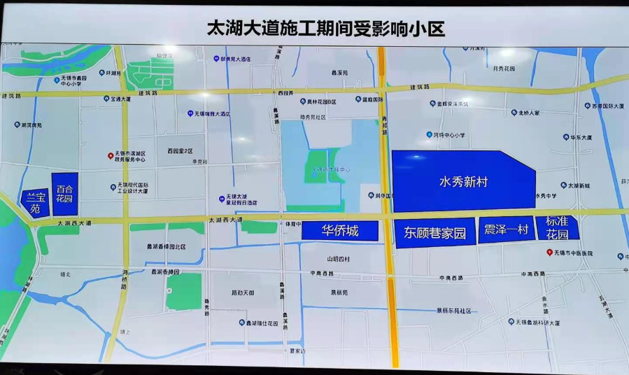 除此以外,太湖大道的金匮桥西堍到湖滨路为夜间半幅施工双向通行,对道路交通影响较小。