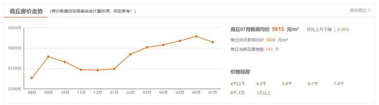 反观商丘市7月新房均价,安居客平台数据显示,7月商丘新房均价5615元/平方米,环比下降0.25%,当前在售楼盘143个。按此粗略计算,以买100平方米首套住房为例,约合总价56.15万元。