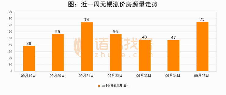 根据诸葛找房数据显示,无锡24小时涨价房源量为75套,较09月24日增加28套,环比上涨59.6%。与此同时,涨价房源占比小幅扩大,业主信心有所提升。