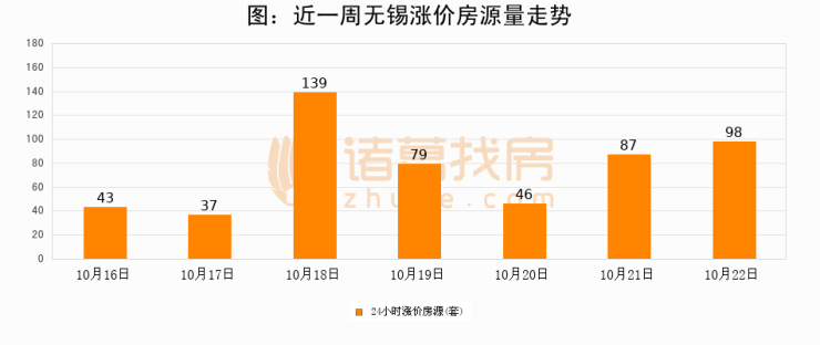 根据诸葛找房数据显示,无锡24小时涨价房源量为98套,较10月21日增加11套,环比上涨12.6%。与此同时,涨价房源占比小幅扩大,业主信心有所提升。