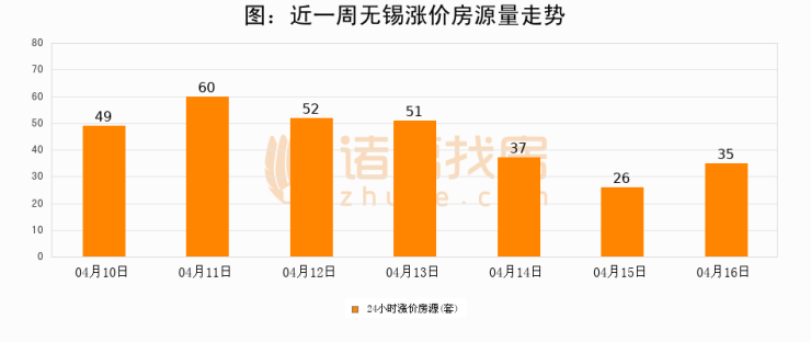 根据诸葛找房数据显示,无锡24小时涨价房源量为35套,较04月15日增加9套,环比上涨34.6%。与此同时,涨价房源占比小幅扩大,业主信心有所提升。